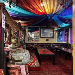 I got sick from eating here right after but when I ate the food it was one of the most delicious middle eastern foods I've ever had. I can't tell if it's from the food or the hot sauce I had with it because my partner ate the food and although he had bloat he didn't have the same severe symptoms I did. I had the dumpling appetizer with ground beef and it was so silky and declines and soft. Then I ate the beef kebab plate with rice and it was supposed to have tomatoes but didn't? My partner got the rice with lamb with carrots and raisins and I have to admit I don't even like lamb but that was just tender and delicious. We ended with the pudding desert which was good it tasted a lot like chai from the cardamom. Overall the kebabs and meats were just so flavorful wherever grilled or steamed it was unfortunate I had stomach issues after.